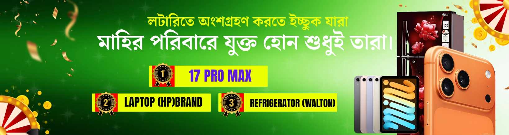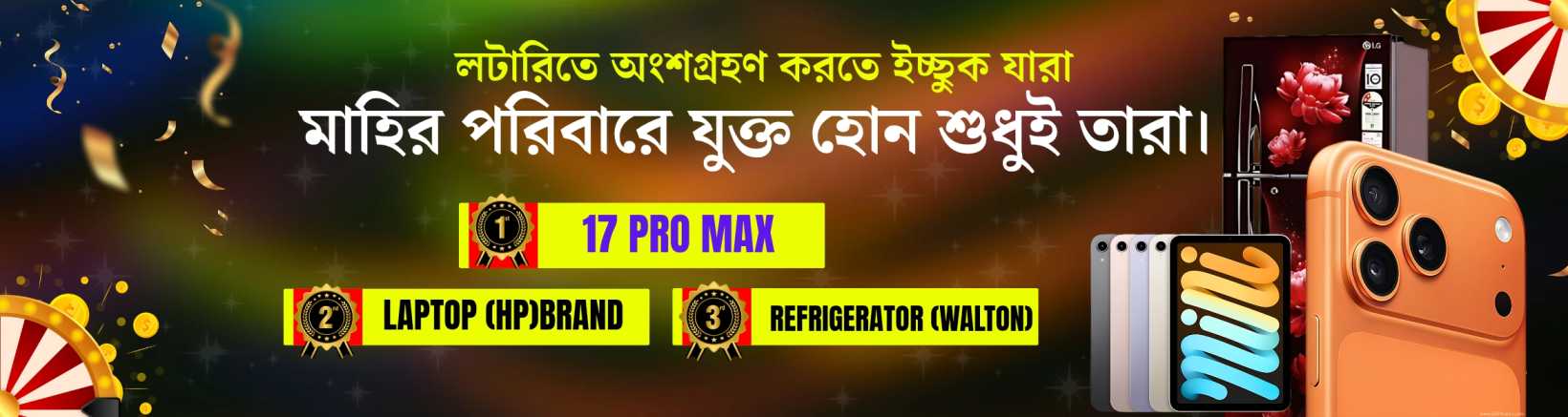 ✨🎉 মাহির ফ্যামিলিতে চলছে ধামাকা লটারি অফার! 💰 লটারিতে অংশগ্রহণ করতে ইচ্ছুক যারা মাহির সাহেব কাছে দ্রুত অ্যাকাউন্ট করুন তারা এই পুরস্কারে আমার আন্ডারে যত এডমিন সাব এডমিন সুপার মাস্টার লোকাল এজেন্ট আছে সবাই অংশগ্রহণ করতে পারবেন। 🏆 প্রথম পুরস্কার: আইফোন ১৭ প